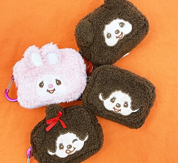 ふわふわコロンと可愛い。モンチッチのカラビナ付きミニポーチ。
