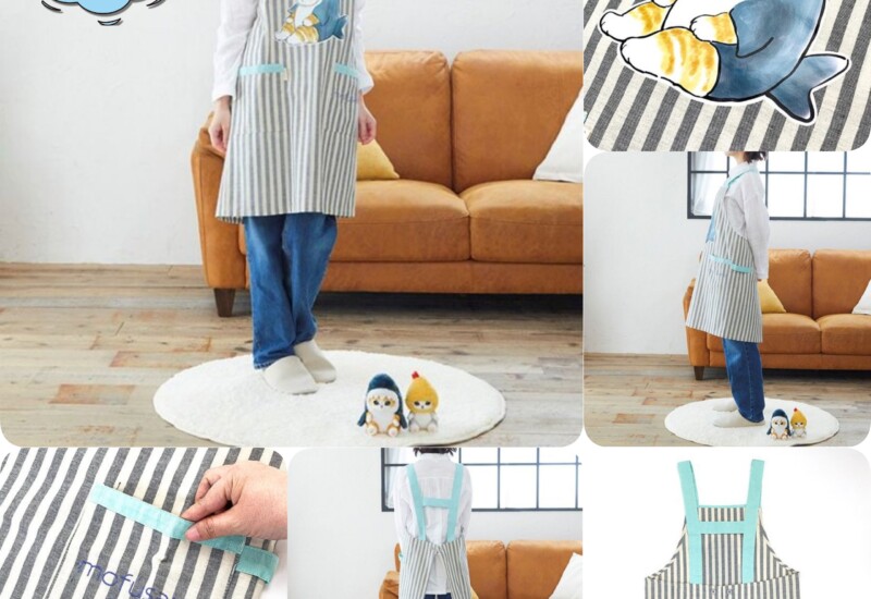 簡単に着脱できて便利なサメにゃんのエプロンとマットでな家事も...