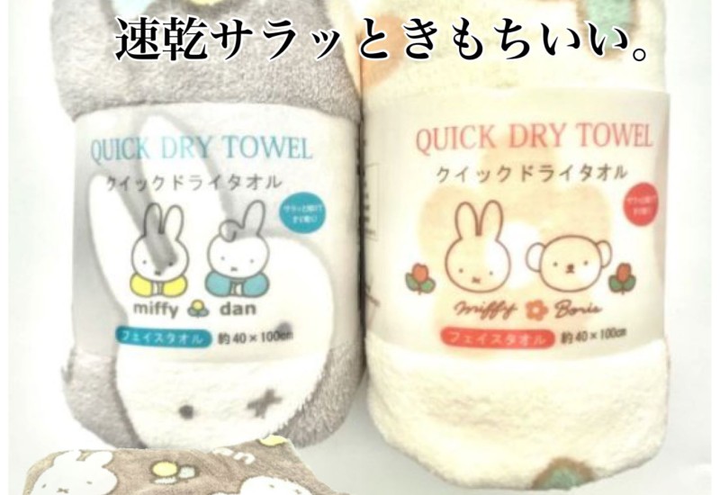 速乾サラッとがきもちいい。ミッフィーの速乾フェイスタオルとバ...