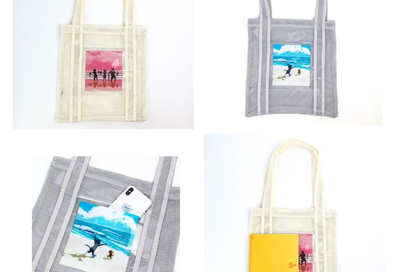 トムとジェリーの背中が語るトートーバッグ。メッシュ素材なので...
