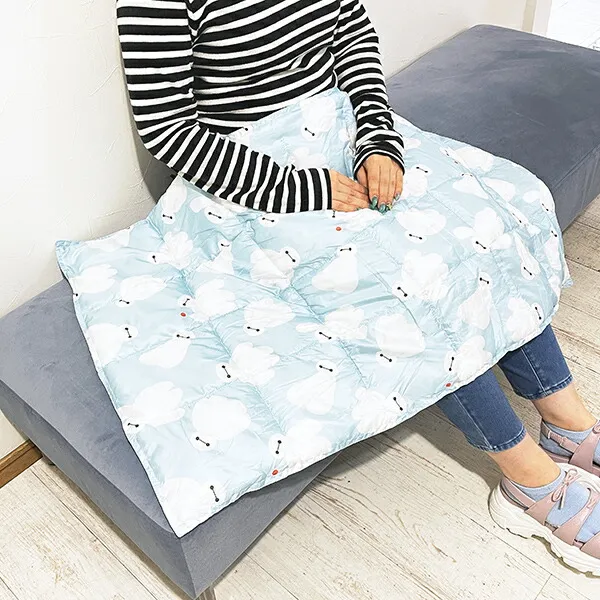 ベイマックスのブランケットを実際に広げて使ってみると、このような様子に。大きすぎず小さすぎない程よい大きさで、家でも屋外でも万能に活躍しそう。