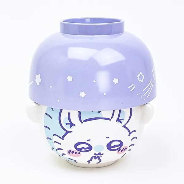 ちゅるんとした紫カラーの食器。「ちいかわ」モモンガ、汁椀茶碗セット。推しキャラと一緒に毎日のごはんを楽しめる。