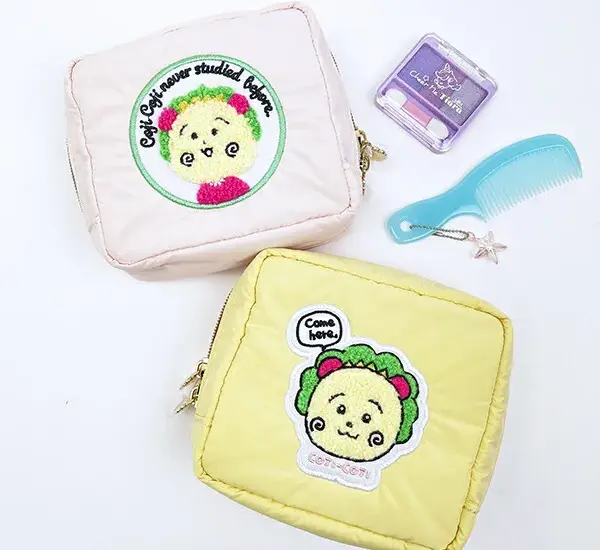 パステルカラーで穏やかな気分になれる。コジコジのサガラ刺繍ポーチ。