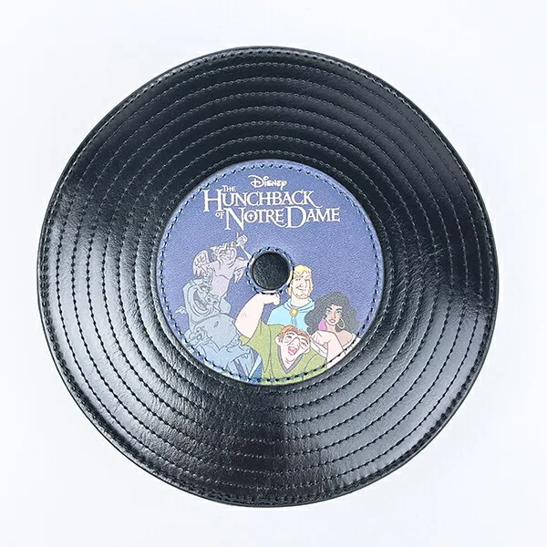 まずはこちら、リメンバーミーのデザインポーチです。サイズ:15.5cm×15.5cm×4.5cmでメイク道具や小物を入れるのにぴったり。レコードのまあるいフォルムが可愛らしい!
