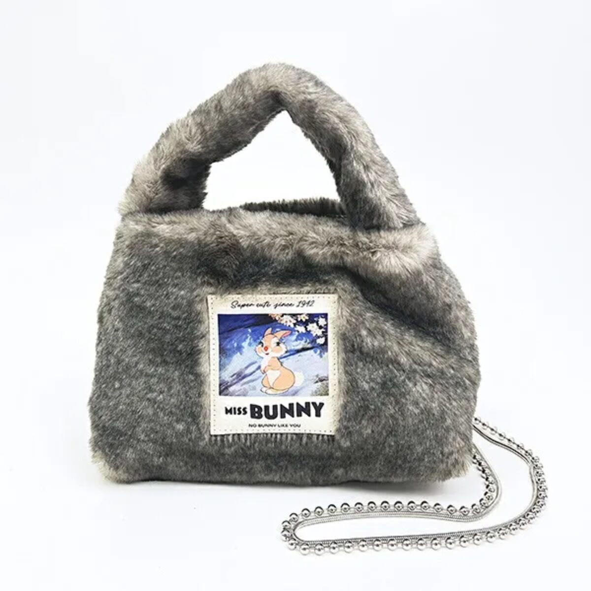 こちらは、ミスバニー ラベルファーショルダーバッグ グレーです。