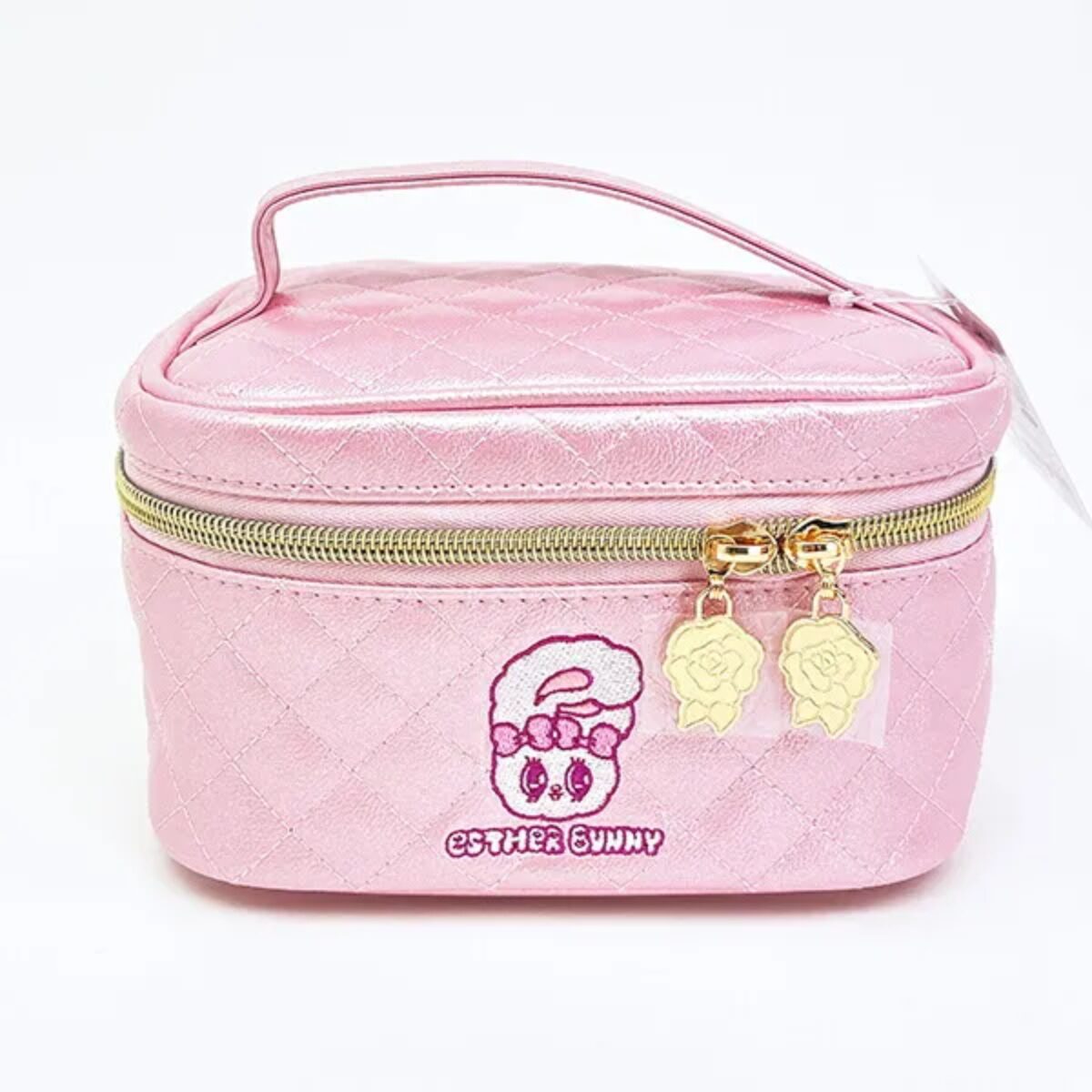 今回ご紹介するのは、ポップでガーリーなテイストのウサギのキャラクター「エスターバニー」をモチーフにした生活アイテムをご紹介させていただきます。今回は、光沢感のあるキルティング生地に刺繍デザインがエレガントに可愛いポーチです。