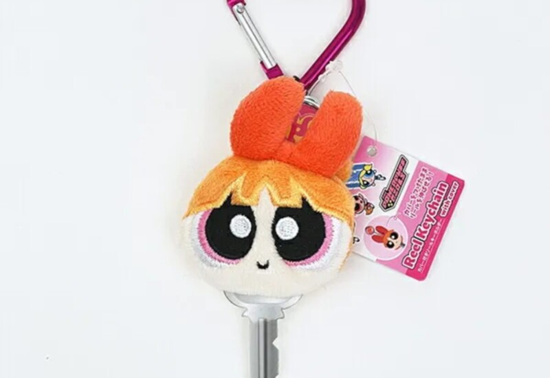 パワーパフガールズのカバー付きリールキーホルダー。お茶目なフェイスデザインにリール付き。