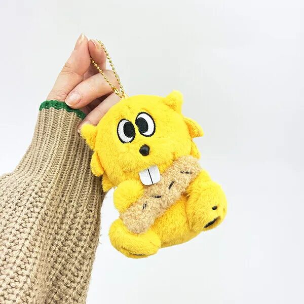 ボールチェーン付きのマスコットもございます。ビーバーのきょとんとした表情がたまらなく、かばんにつけて愛らしいチャームポイントになりそうです。サイズ:12cm×9cm×8cm