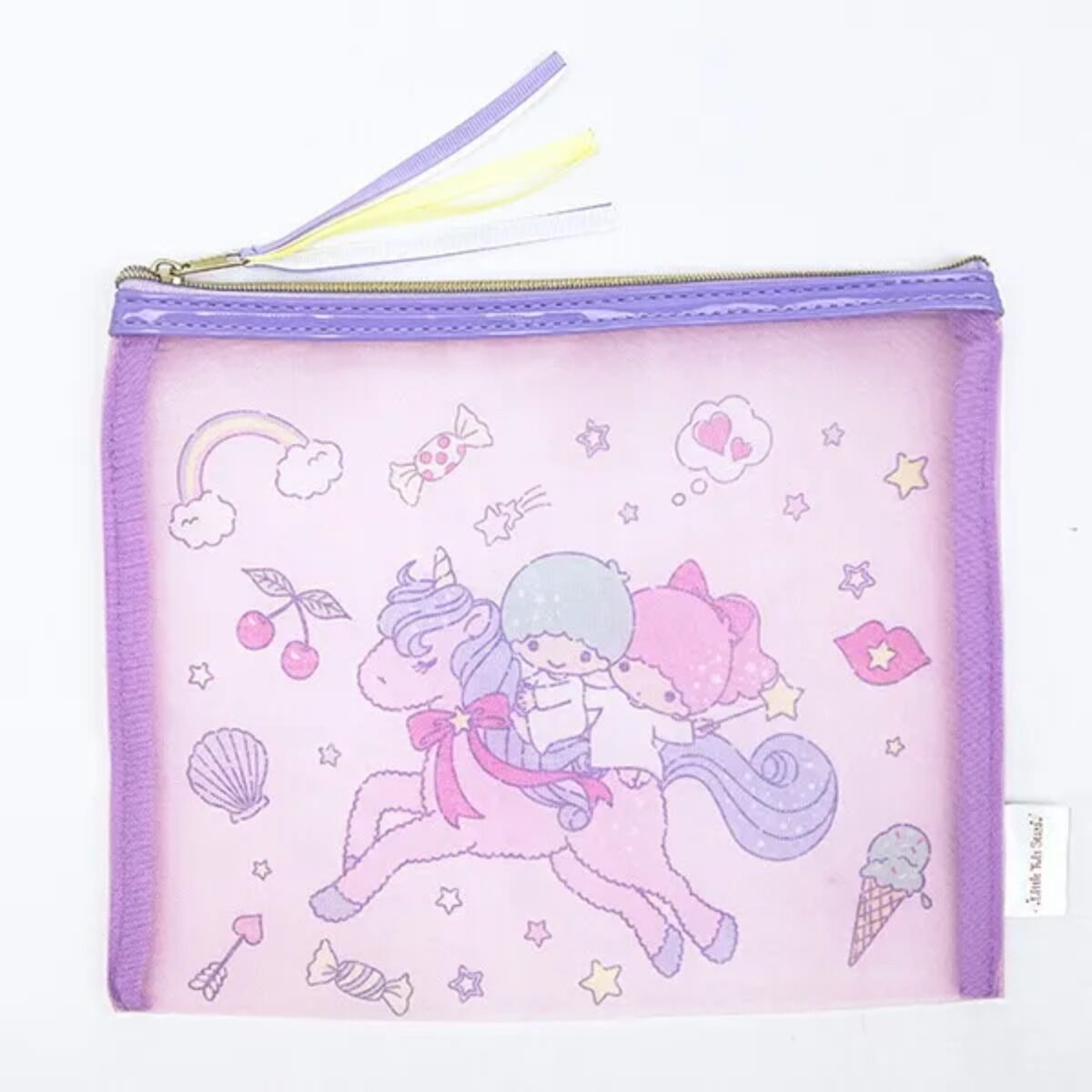 今回ご紹介するのは、ゆめ星雲の思いやり星でうまれたふたごのきょうだい星「リトルツインスターズ」をモチーフにした生活アイテムをご紹介させていただきます。今回は、中見が見えるオシャレなメッシュ素材のポーチやバッグです。