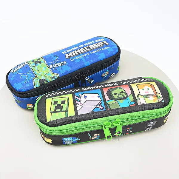 まずご紹介するのは、「マインクラフト 集合 フルオープンポーチ」。サイズ:8cm×21cm×6cm。勉強にぴったりなペンケースです。