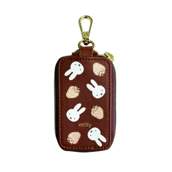 まずご紹介するミッフィーのカー用品は、スマートキーカバー。シックなブラウンが大人っぽく、ミッフィーのおかおとイチゴが甘いデザインです。