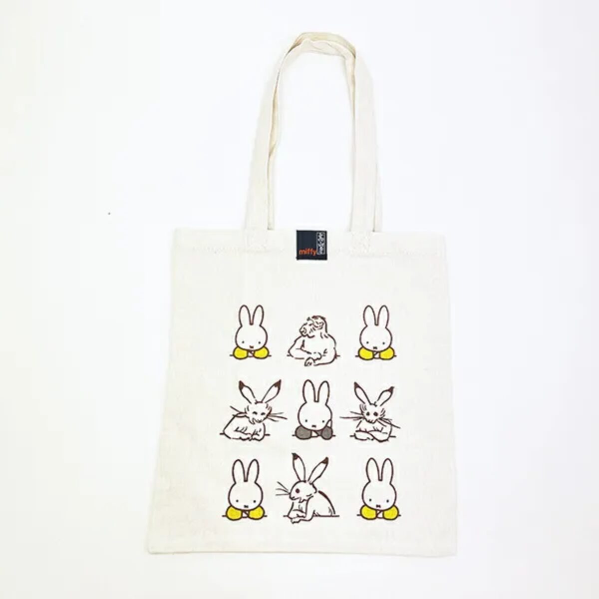 ミッフィー 鳥獣戯画トートバッグにはデザイン違いのラインナップもそろっています。こちらは、わいわいガヤガヤ のデザイン違いです。