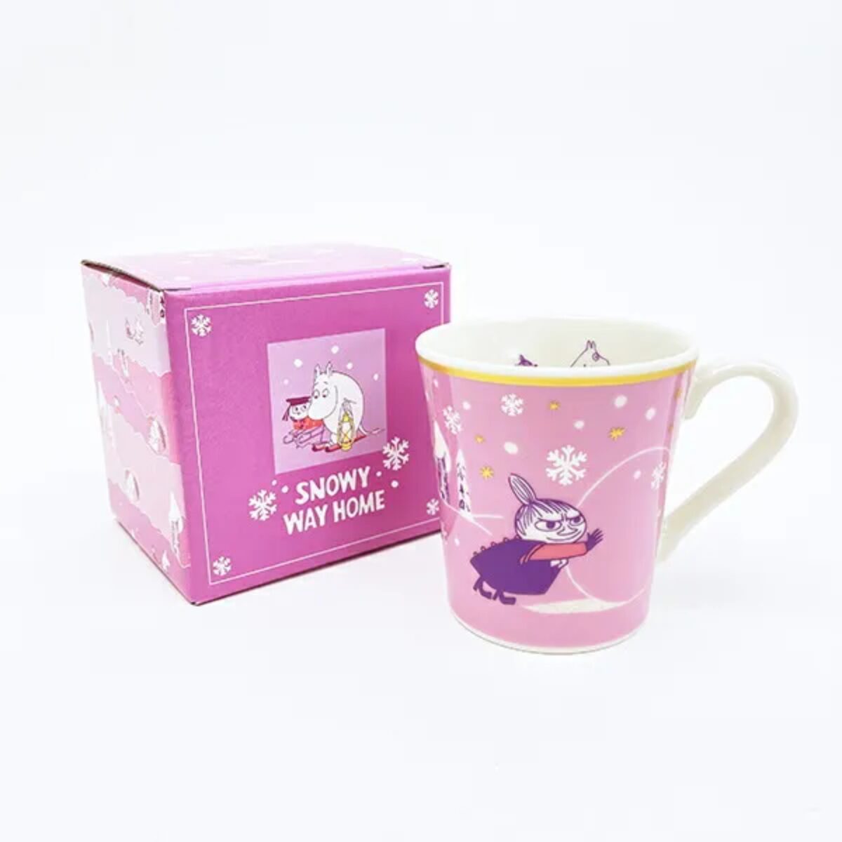 ムーミンたちのなにげないワンシーンデザインにほっこり。ムーミンたちの冬のワンシーンが描かれたSNOWY WAY HOMEシリーズのマグカップです。