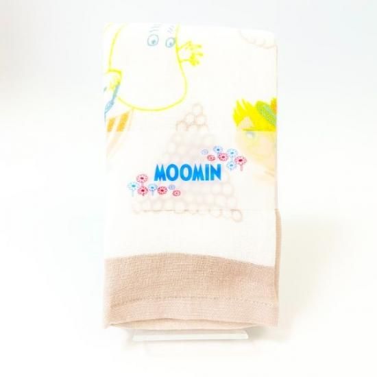 果物を収穫しているムーミン一家とミィがプリントされたナチュラルなデザイン。温かみのあるイエローのタオルは、見ているだけで心が安らぎます。