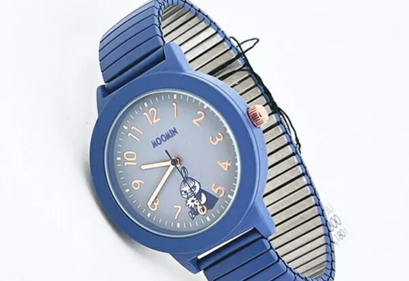ムーミンの腕時計をつけて大人かわいさアップ。ジャバラベルトに落ち着いたカラーがおしゃれすぎるんです。