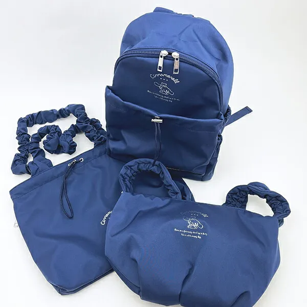 ネイビーの生地にシナモロールのワンポイントが入っていて、派手すぎない可愛さが魅力。カジュアルにもおめかし気分でも、どんなコーディネートにも合わせやすそうです。