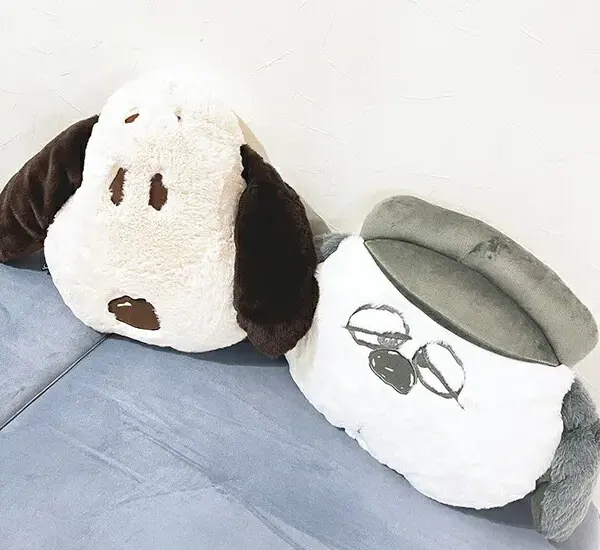 ふわふわな手触りにうっとり。スヌーピーの大きめクッションに癒されよう。