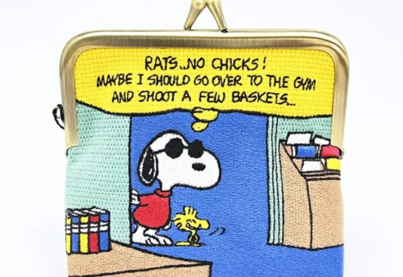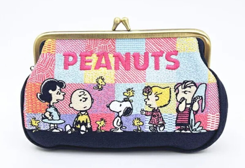 スヌーピーの畳刺繡ガマ口ポーチ。細かい刺繍に高級感も感じさせるポーチです。