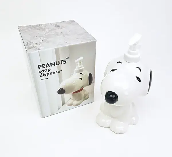 スヌーピーとチャーリー・ブラウンのソープディスペンサー。手洗いのちょっとした瞬間も和やか...