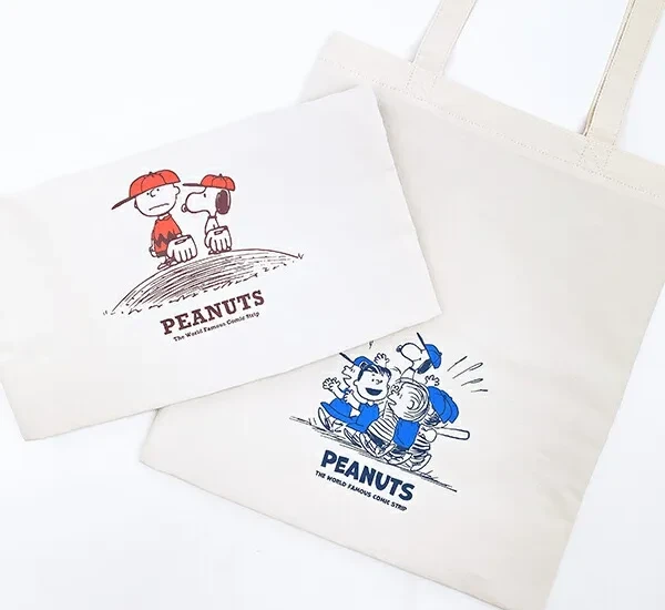 落ち着いたかわいさで大人も持ちやすい。スヌーピーのベースボールトートバッグが登場!