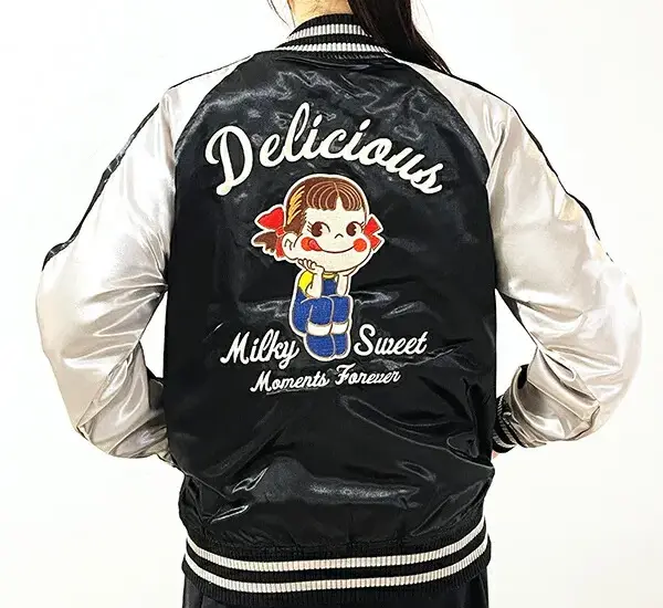 珍しい雰囲気のペコちゃんのコラボアイテム!刺繡が可愛く、メタリック生地がクールで高級感あ...