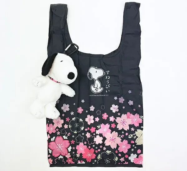 桜柄がカワイイ!スヌーピーのぬいぐるみエコバッグを持ち歩きたーい!