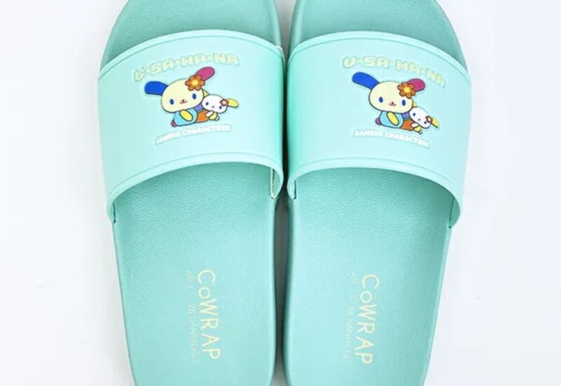 サンリオ×アコモデの人気シリーズ「CoWRAP」のコラボアイテムからシャワーサンダル。足元がカラ...