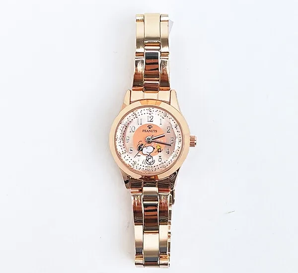 ねぇ、見て!って言いたくなる。キラキラでジュエリーみたいなスヌーピーのメタルウォッチ