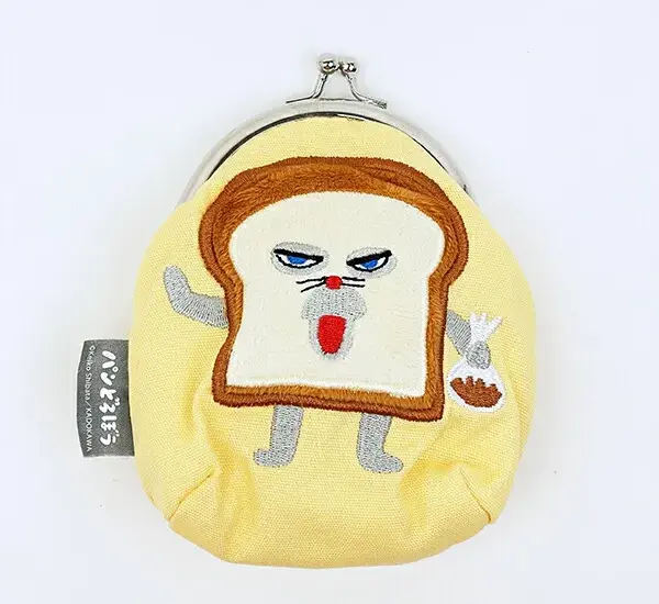 パンどろぼうのがま口ポーチ。ふわふわ半立体のアップリケで存在感抜群。