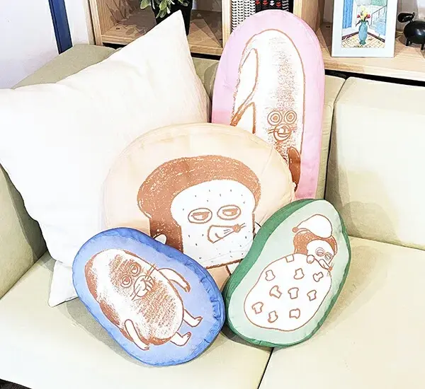 パンどろぼうのユニークなもちもちクッションはずっと触っていたい手触りが魅力!ソファやベッドに並べてインテリアにおすすめ。