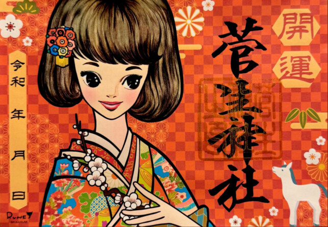カワイイ♡ 着物姿のカワイイルネガールが描かれた御朱印が1月1日から配布されますよ。