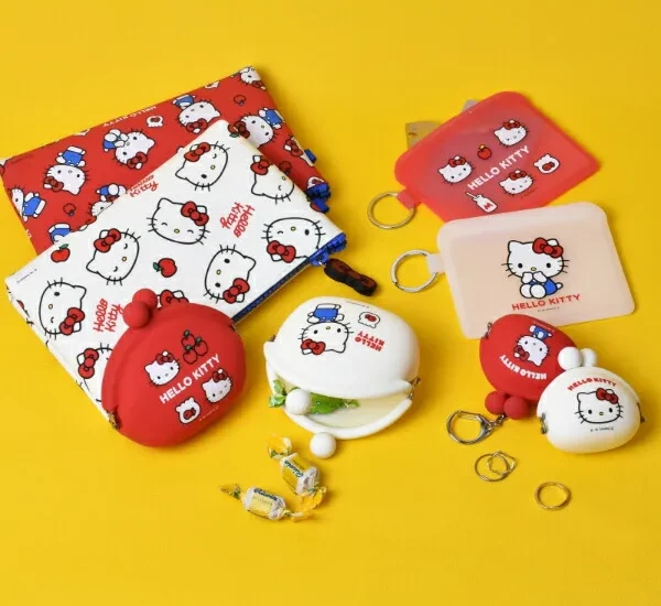 サンリオキティのシリコンポーチ。ベーシックなホワイトandレッドが落ち着きます。[予約開始]