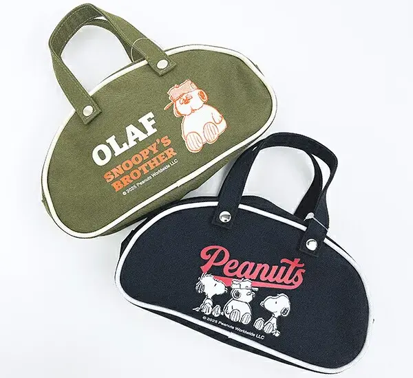 スヌーピーとオラフのレトロバッグポーチ。懐かしさ溢れるデザインとフォルムが魅力です。