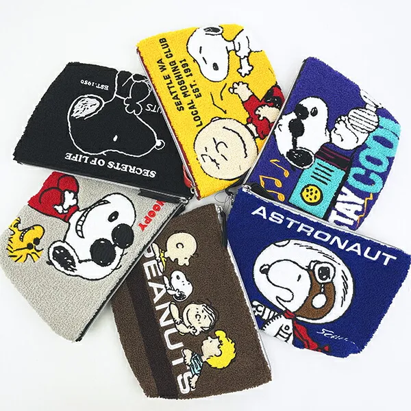 今回は、スヌーピーの魅力をアップさせる「さがら刺繍」のポーチに注目してみました。毎日使うポーチだからこそ、手に取るたびに気分がやわらぐようなものを選びたくなりますよね。さがら刺繍ならではのもこもことした質感が、そんな気分に寄り添ってくれますよ。6種類のラインアップはどれも欲しくなる可愛さです。
