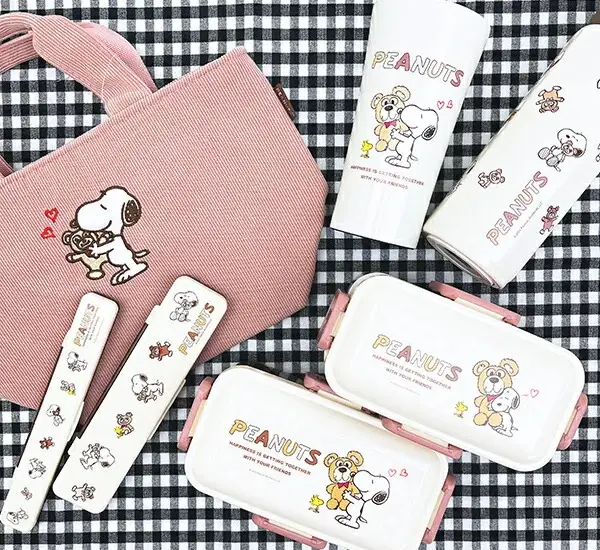 スヌーピー and ベアのイラストと色味が落ち着いた雰囲気のランチグッズ特徴!シリーズで揃えたくなるおしゃれな弁当箱や箸など。