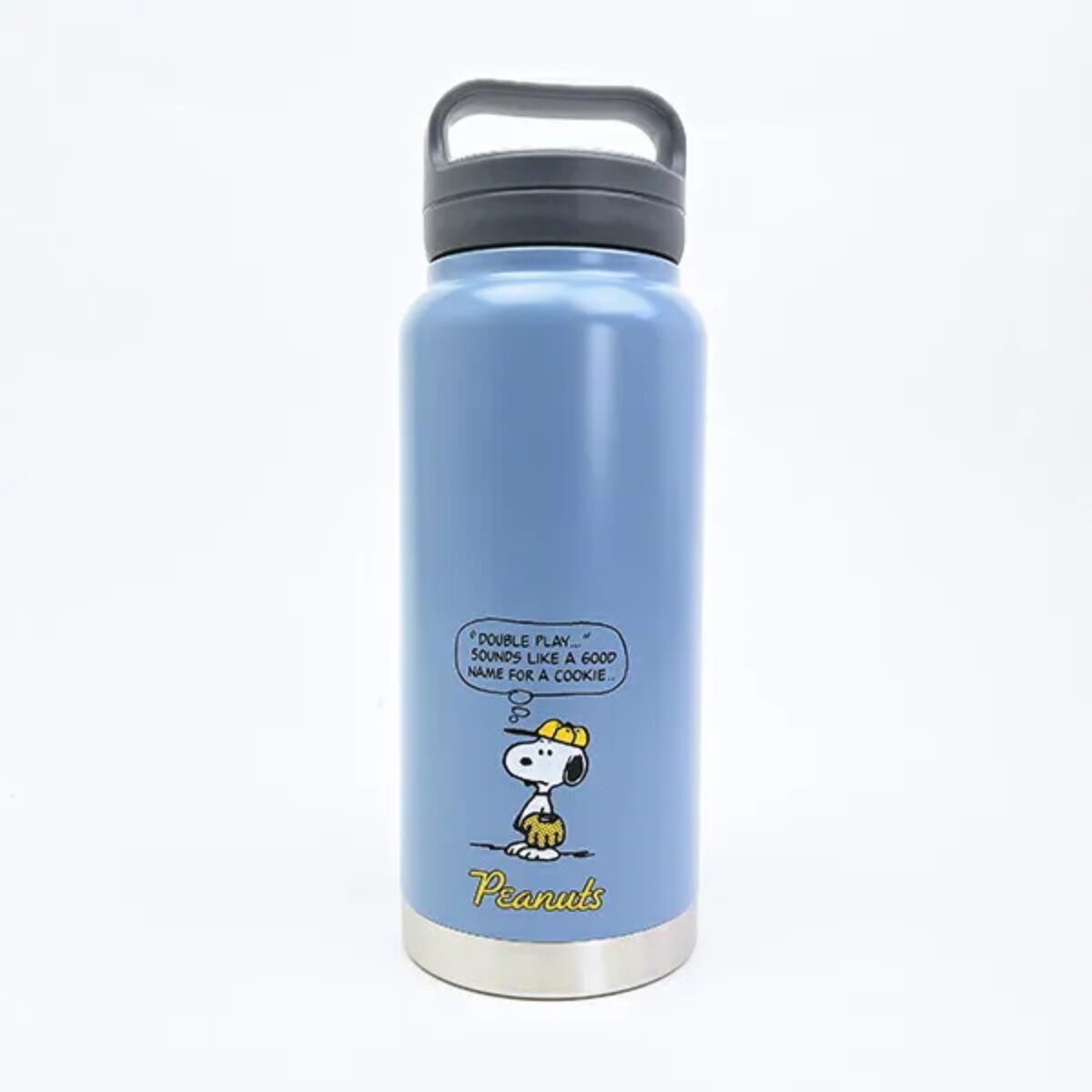 スヌーピーのスクリューハンドルマグボトル。手持ち付きで使いやすく、大容量で水分補給が多めな日でも便利です。