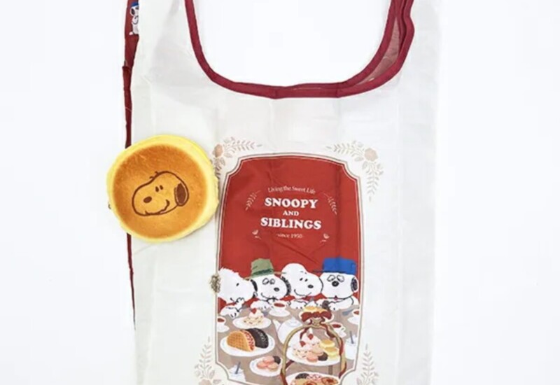 見た目はおいしいカスタードケーキ!!?実はエコバッグにもなるスヌーピーのスウィートでお茶目な収納ポーチ付きエコバッグです。