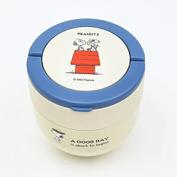 楽しいランチ時間を演出するスヌーピーの折りたたみハンドル付保温丼ジャー