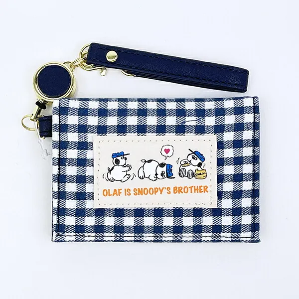 オラフとネイビーのチェック柄がおしゃれなスヌーピーのパスケース!コインケースやパスポーチ付きのものはバッグに付けると便利
