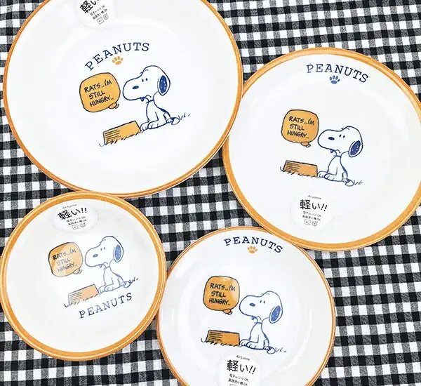 ポップなカラーとイラストが楽しいスヌーピーの食器シリーズ!スヌーピーのボウルやプレートが並んだ食卓でワクワクします