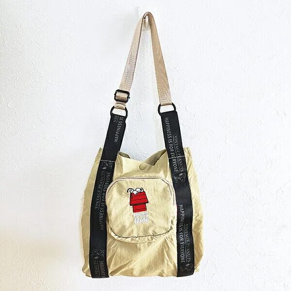このスヌーピーのコンパクトショッピングバッグは有能すぎた。取り外しと長さ調整可能なショルダーベルト付き。
