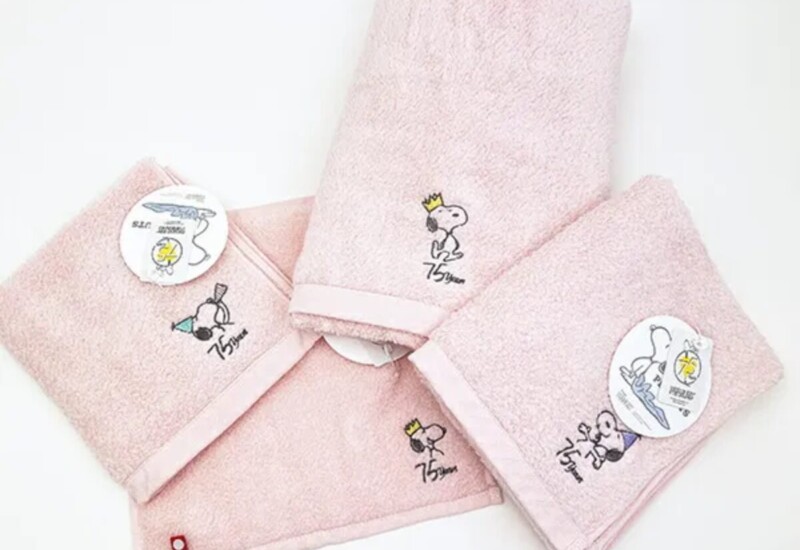 スヌーピー75周年記念アイテム。さりげないかわいさに肌触り抜群な高品質なタオルです。