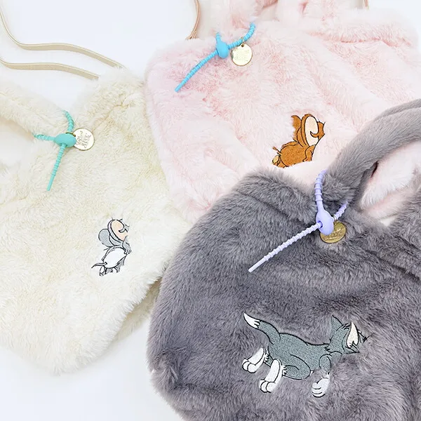今回ご紹介するのは、トムとジェリーのファートートバッグ。ふわふわもふもふのファーが全体にあしらわれていて存在感抜群。どんなコーデにも似合うこと間違いなしです。トム、ジェリー、そしてタフィーの3デザインからお気に入りを選んでみてください!