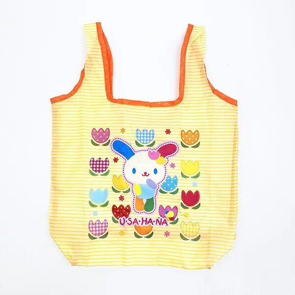 折りたためるエコバッグになっているので、コンパクトになって持ち運びも便利です。折りたたんだときでもかわいらしいウサハナフェイスがひょっこりでにやけてしまいます、、、!急なお買い物時でもバッグの中に入れておけば、いざというときに大活躍しそうです。サイズ:50cm×27cm×12cm 素材:ポリエステル